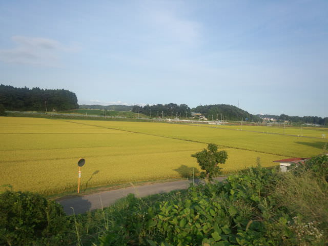 (わかりますか?緑色がかった稲はササニシキ、黄色がかった稲はひとめぼれだそうです!!)