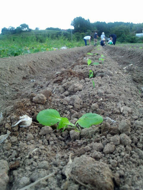 9月8日、松島町の丹野さんの畑に、野の島で今年採種された白菜の種(松島新2号)