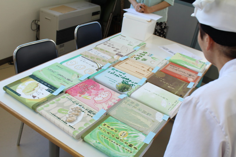 16人の生徒さんが懸命に「こごたふるさと餃子」のイメージを膨らませながら作ってくれましたものを、工場スタッフみんなで拝見。