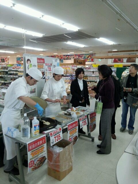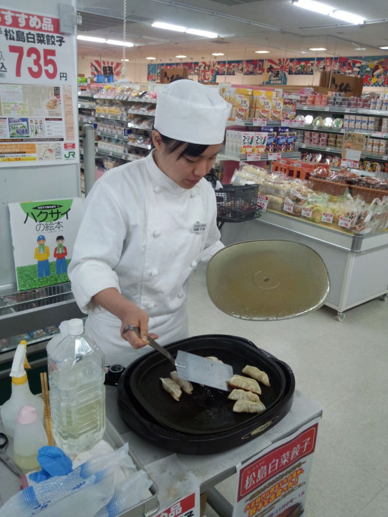 明成高等学校(リエゾンキッチン)さんとの松島白菜餃子の試食販売会の様子です。